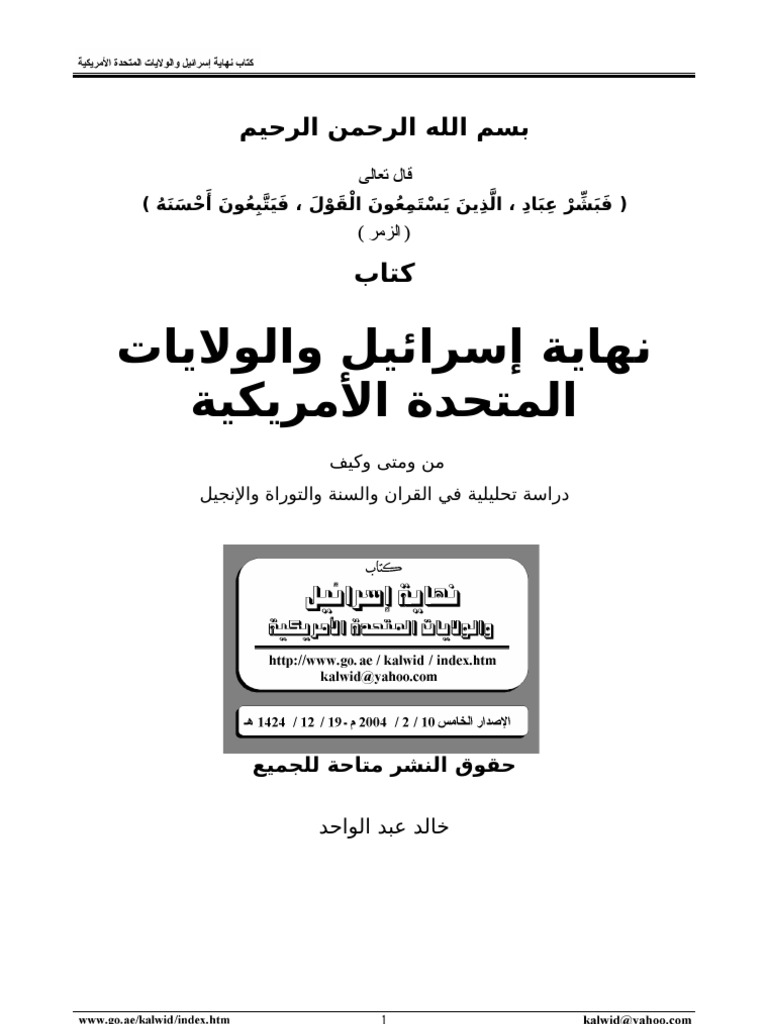 نهاية إسرائيل والولايات المتحدة الأمريكية