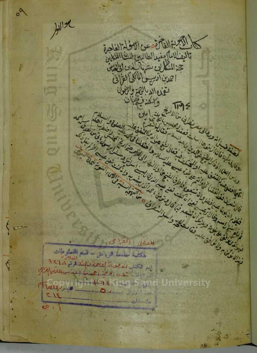 مخطوطة اشرف الوسائل الى فهم الشمائل المؤلف احمد بن محمد بن على بن حجر الهيتمي السعدي الانصاري الرقم العام 15 جامعة الملك سعود كل الكتب